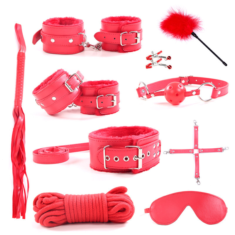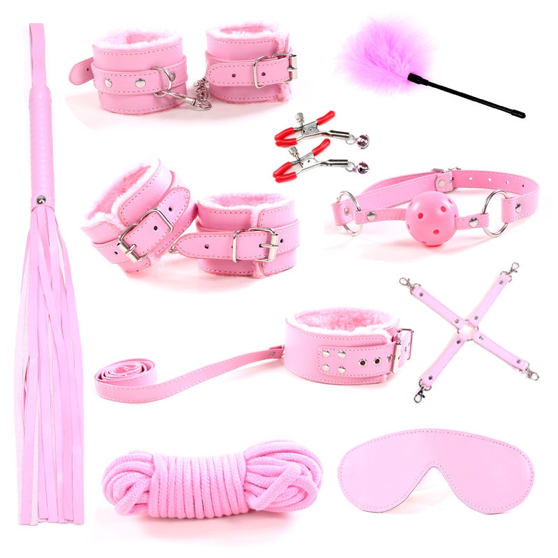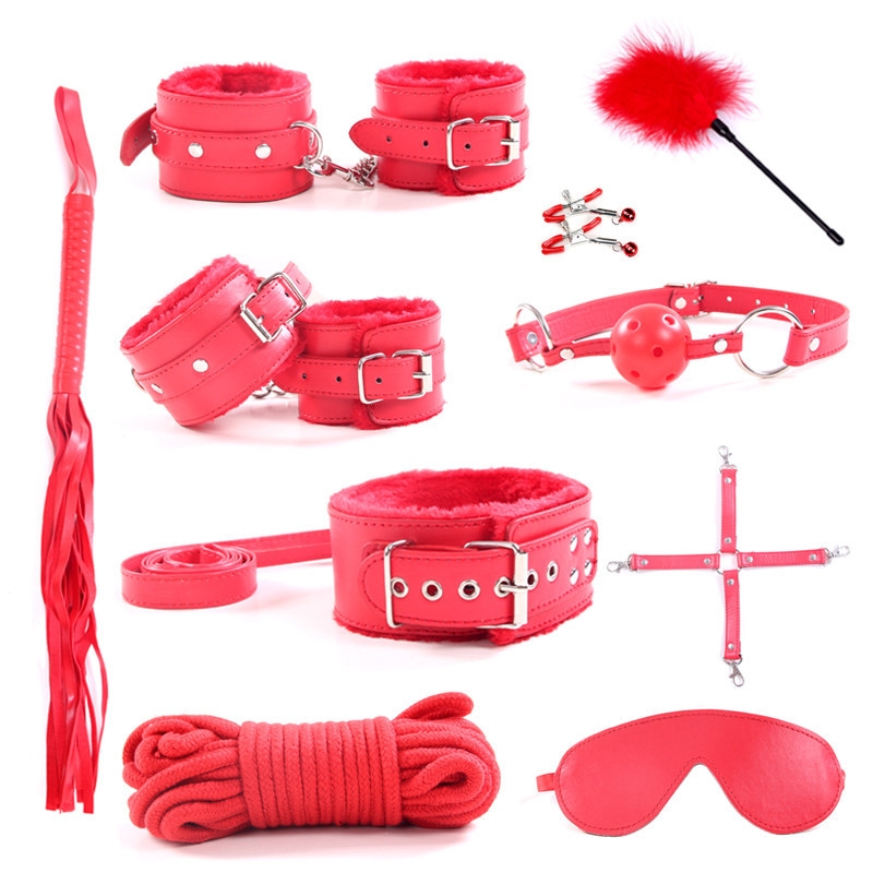 Bộ sản phẩm với đầy đủ các dụng cụ hỗ trợ cực kỳ thú vị và hấp dẫn đối phương bao gồm: Bịt mắt, Khóa hàm, khóa cổ, Roi da, khóa chân, khóa tay (hoặc bộ khóa liền chân tay có thể tháo rời), chổi lông vũ, dây trói.