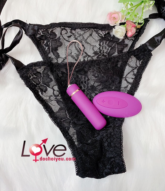 - Màu sắc: trứng điều khiển màu tím, quần chíp màu đen chất liệu ren sexy